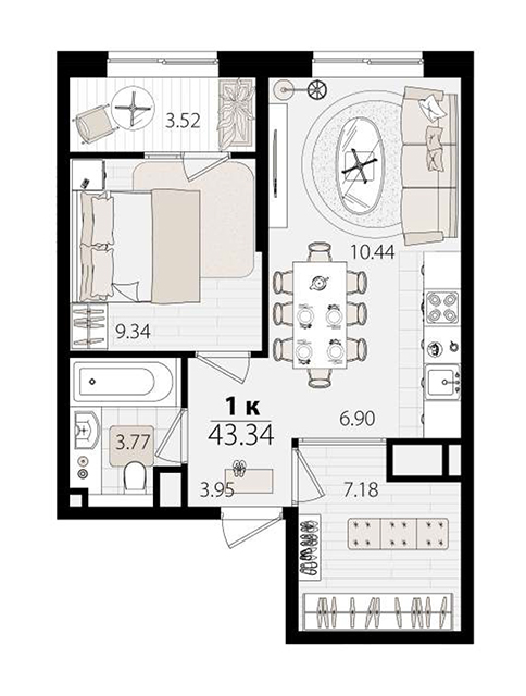 | 1 | 41.77 / 9.7 м² | от 11 879 388 руб. (284 400 руб./м²) | Планировка | |