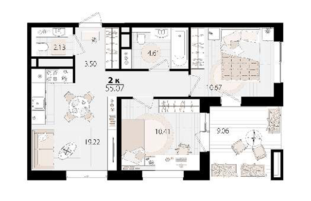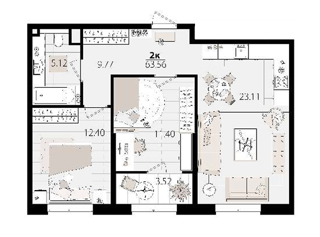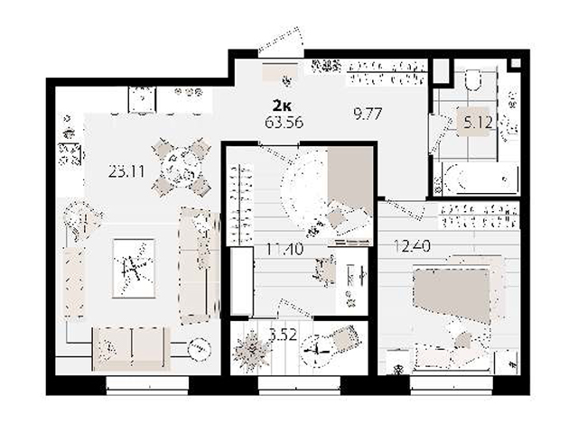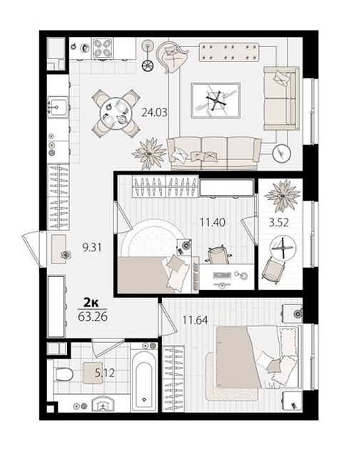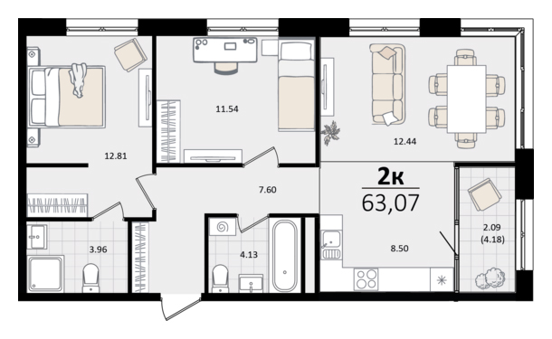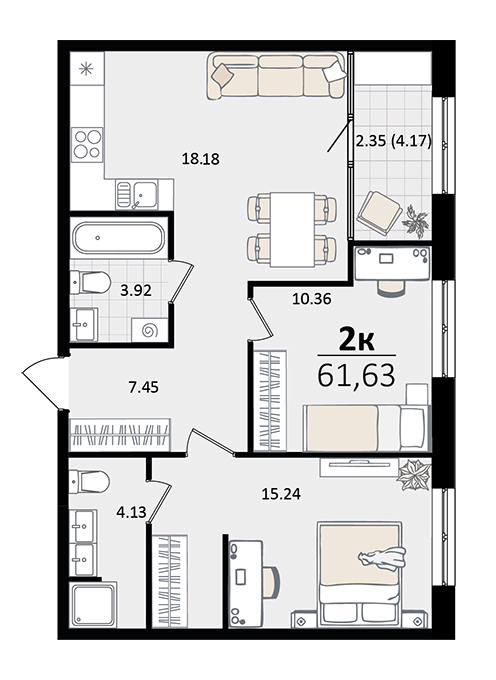 | 2 | 63.06 / 23.8 м² | от 17 240 604 руб. (273 400 руб./м²) | Планировка | |