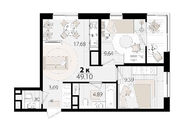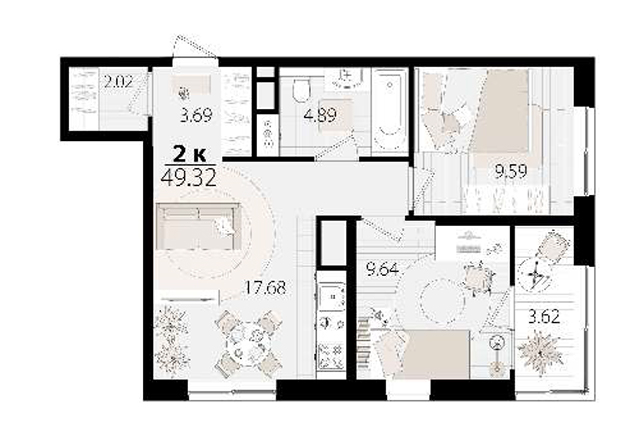 | 2 | 48.89 / 19.23 м² | от 15 366 127 руб. (314 300 руб./м²) | Планировка | |