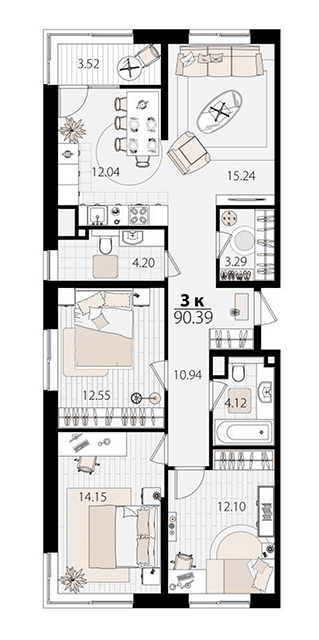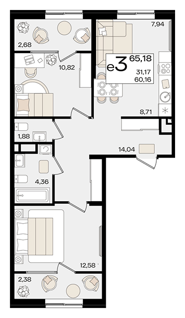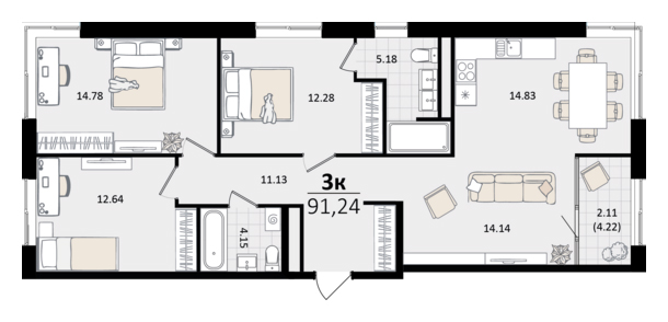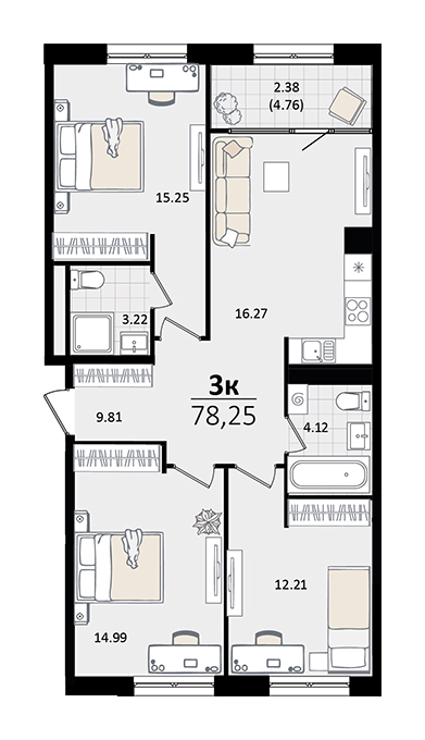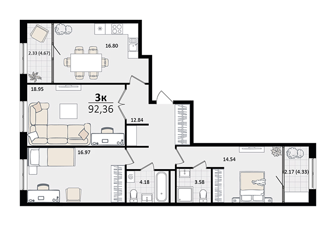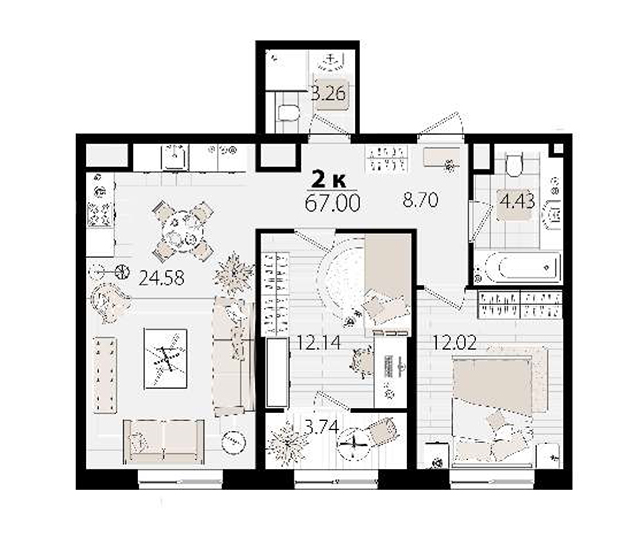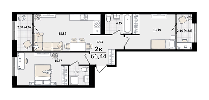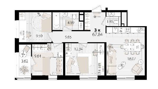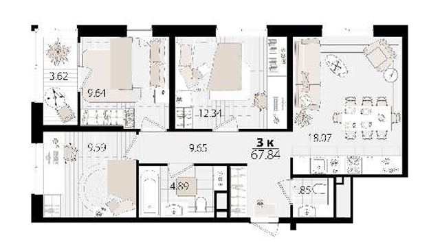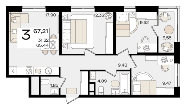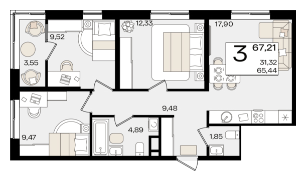 | 3 | 67.21 / 31.32 м² | от 19 101 082 руб. (284 200 руб./м²) | Планировка |