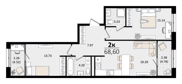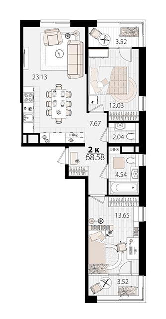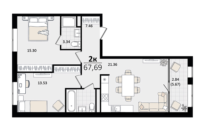 | 2 | 67.69 / 28.83 м² | от 19 718 097 руб. (291 300 руб./м²) | Планировка | |