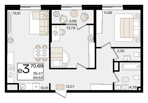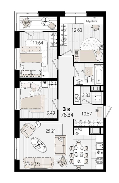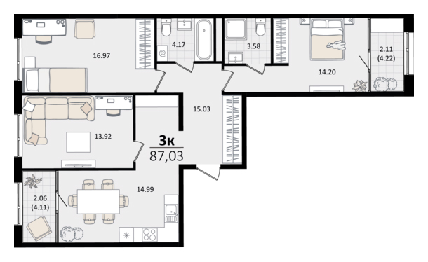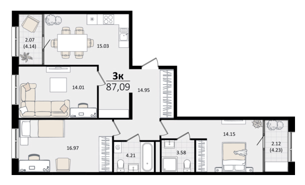 | 3 | 70.23 / 34.03 м² | от 20 289 447 руб. (288 900 руб./м²) | Планировка |