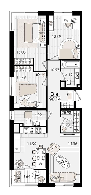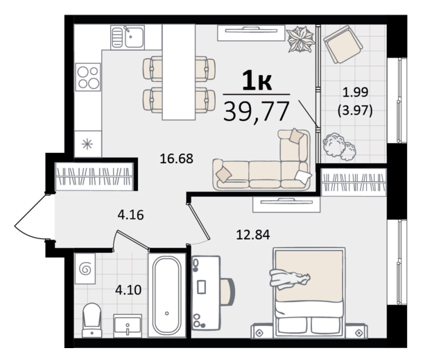 | 1 | 39.77 / 12.84 м² | от 11 123 669 руб. (279 700 руб./м²) | Планировка | |