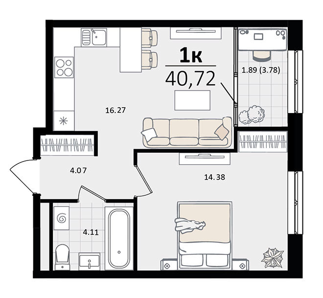 | 1 | 40.72 / 14.38 м² | от 13 580 120 руб. (333 500 руб./м²) | Планировка | |