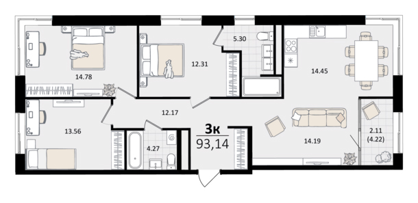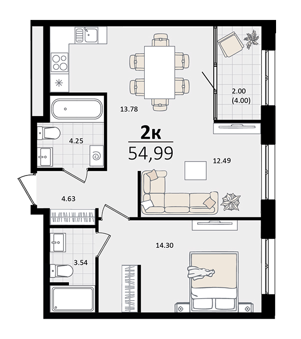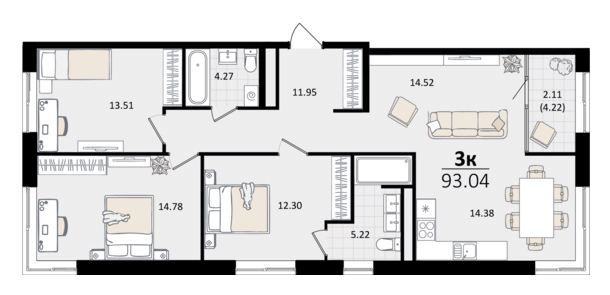| 1 | 54.99 / 14.3 м² | от 17 195 373 руб. (312 700 руб./м²) | Планировка | |