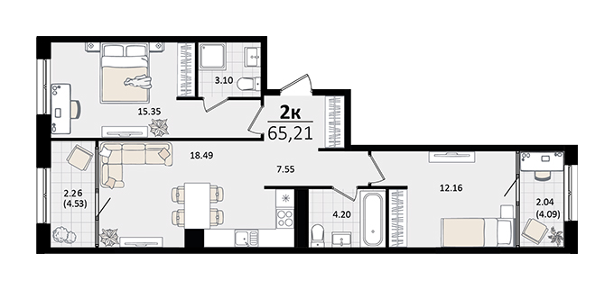 | 2 | 65.18 / 23.2 м² | от 18 634 962 руб. (285 900 руб./м²) | Планировка | |