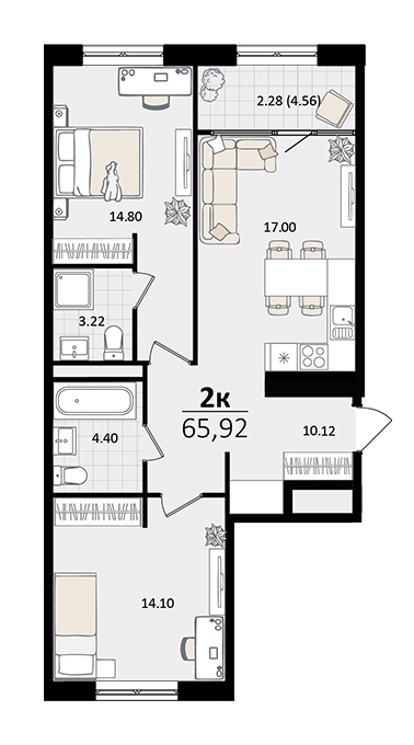 | 2 | 65.92 / 28.9 м² | от 17 897 280 руб. (271 500 руб./м²) | Планировка | |