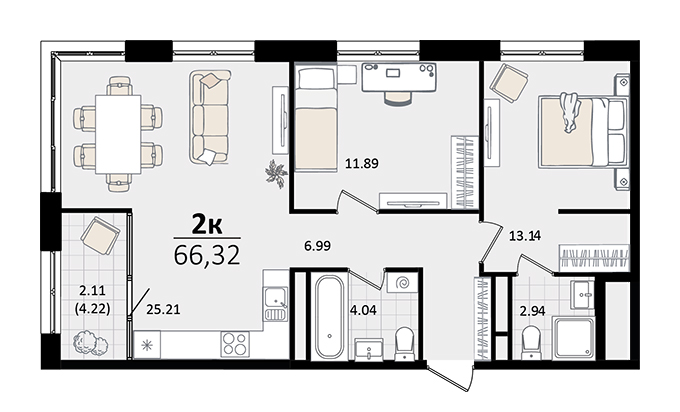 | 2 | 65.92 / 28.9 м² | от 17 561 088 руб. (266 400 руб./м²) | Планировка |