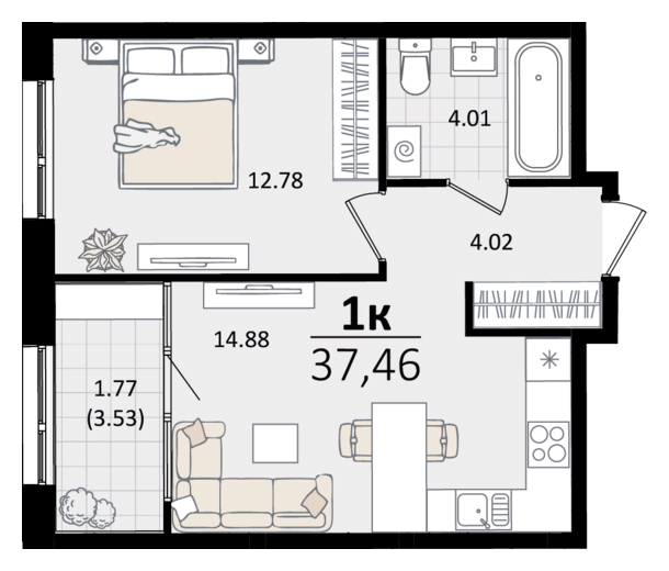 | 1 | 37.46 / 12.78 м² | от 10 657 370 руб. (284 500 руб./м²) | Планировка | |