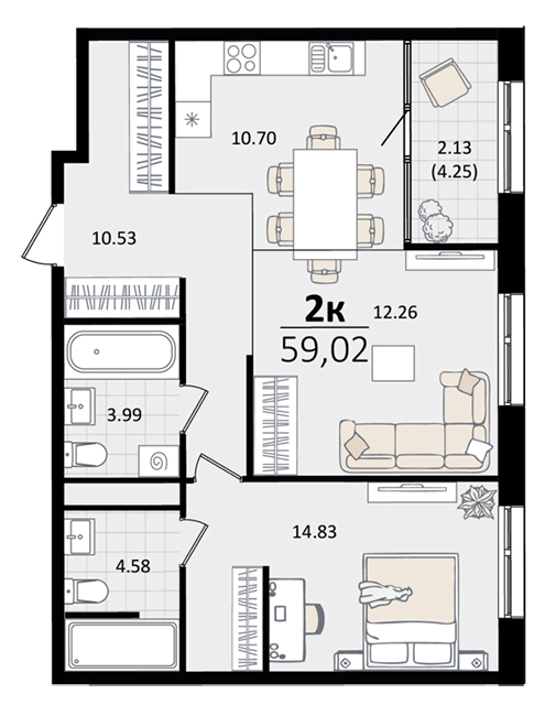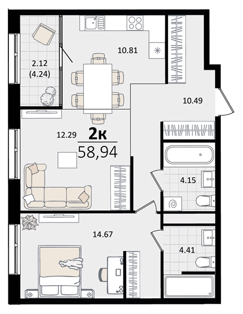 | 2 | 58.94 / 26.96 м² | от 15 825 390 руб. (268 500 руб./м²) | Планировка | |