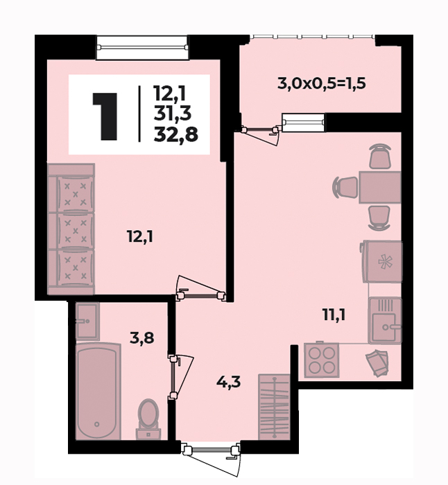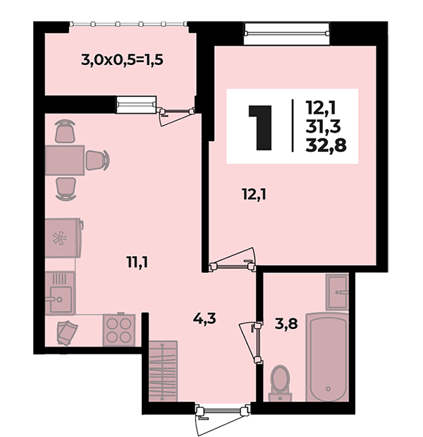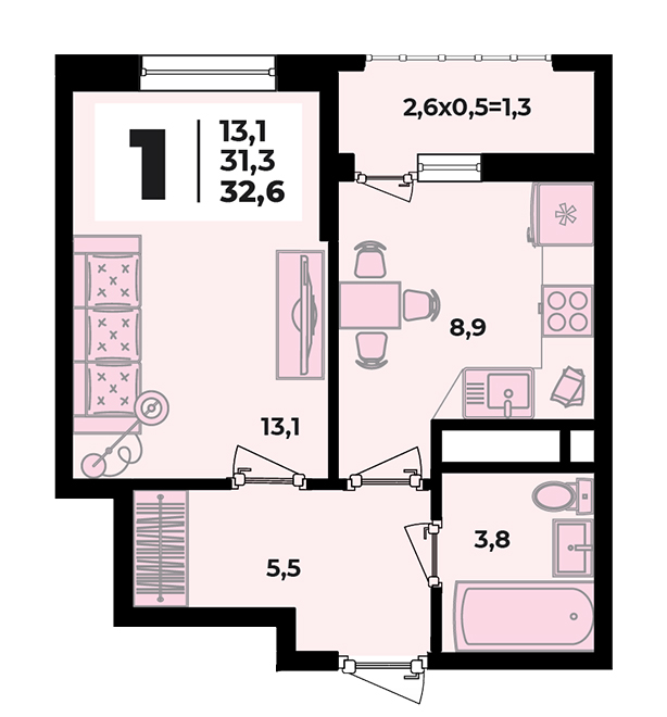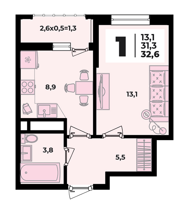 | 1 | 32.6 / 13.1 м² | от 5 037 800 руб. (154 534 руб./м²) | Планировка | |