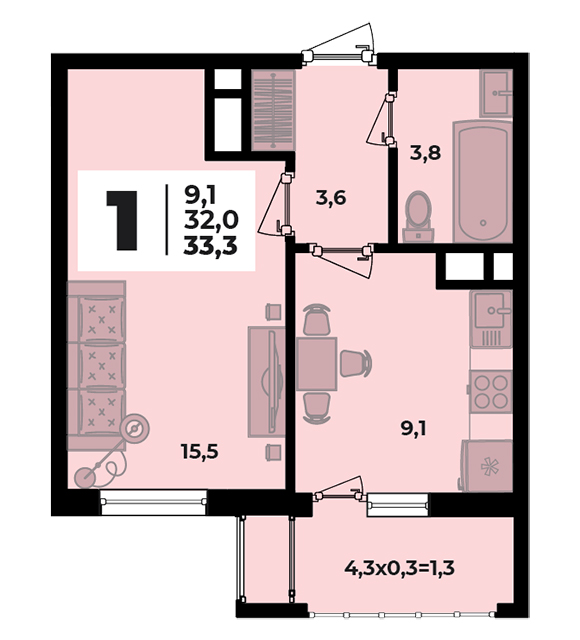 | 1 | 33.3 / 9.1 м² | от 5 111 600 руб. (153 502 руб./м²) | Планировка | |