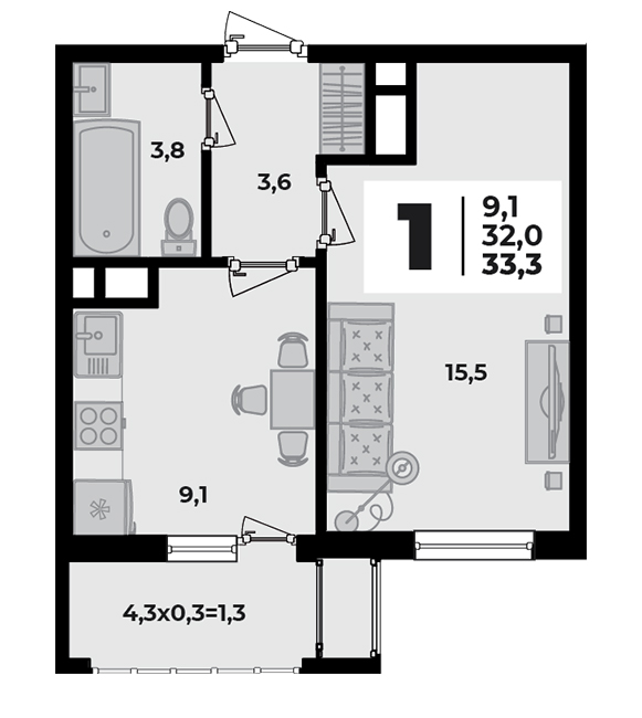 | 1 | 33.3 / 9.1 м² | от 5 278 100 руб. (158 502 руб./м²) | Планировка | |