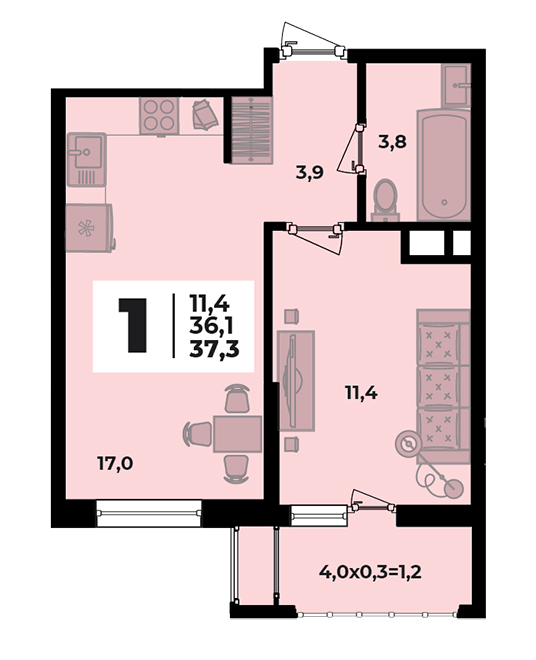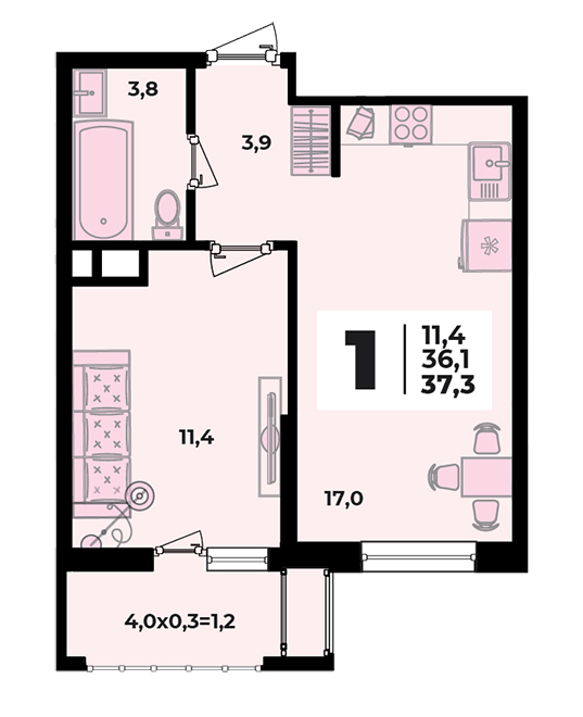 | 1 | 37.3 / 11.4 м² | от 5 719 600 руб. (153 340 руб./м²) | Планировка | |