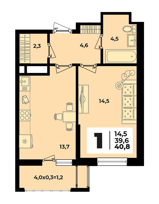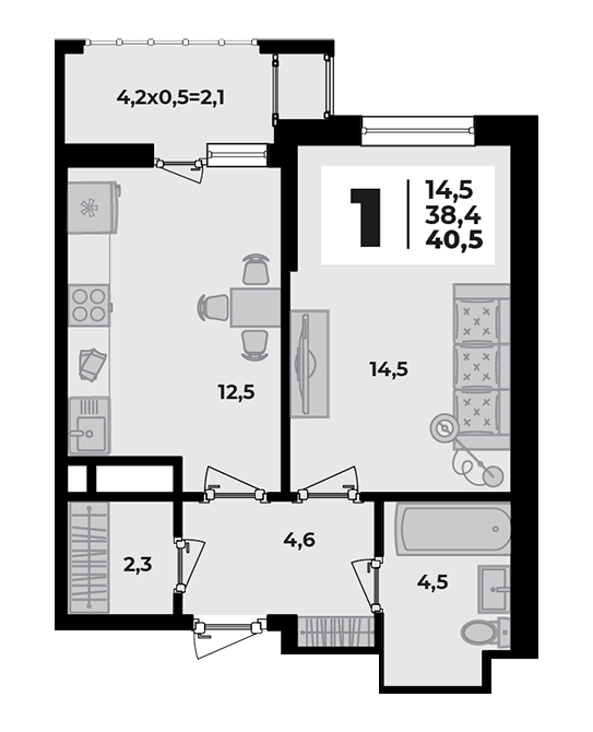 | 1 | 40.5 / 14.5 м² | от 6 084 500 руб. (150 235 руб./м²) | Планировка | |