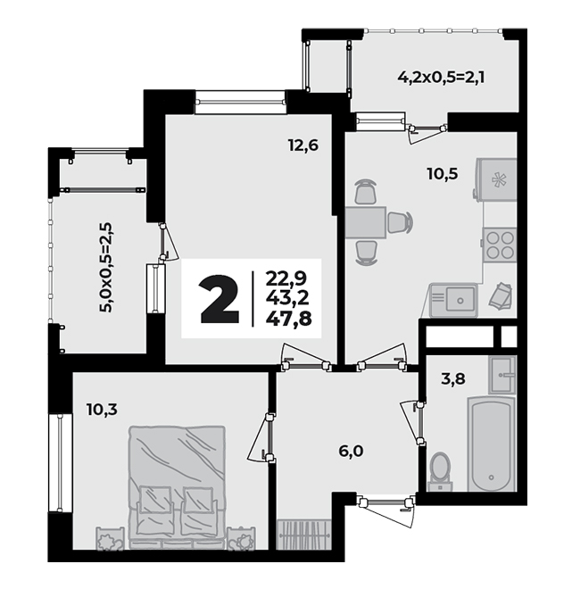 | 2 | 47.8 / 22.9 м² | от 7 267 800 руб. (152 046 руб./м²) | Планировка | |