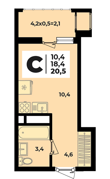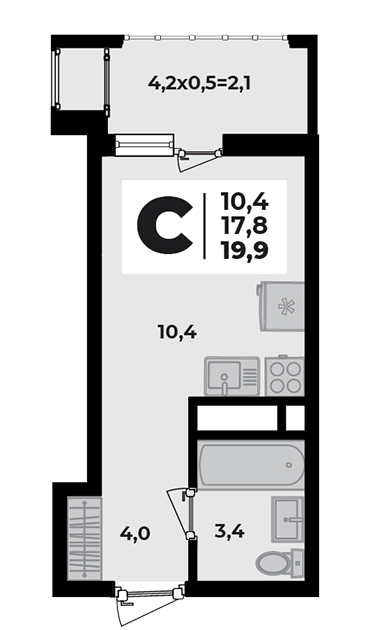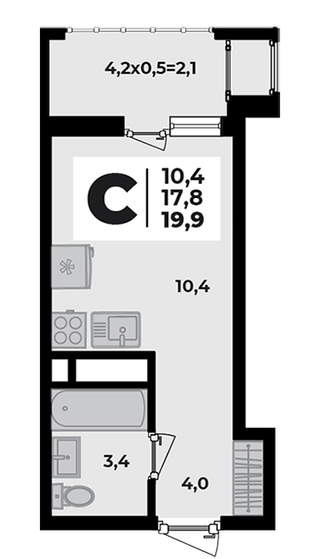 | студия | 19.9 / 10.4 м² | от 3 472 800 руб. (174 513 руб./м²) | Планировка | |
