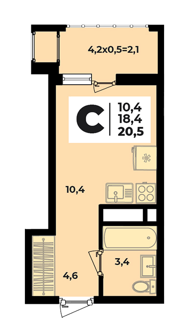 | студия | 19.9 / 10.4 м² | от 3 512 600 руб. (176 513 руб./м²) | Планировка | |
