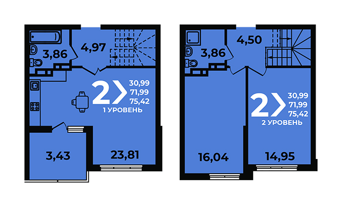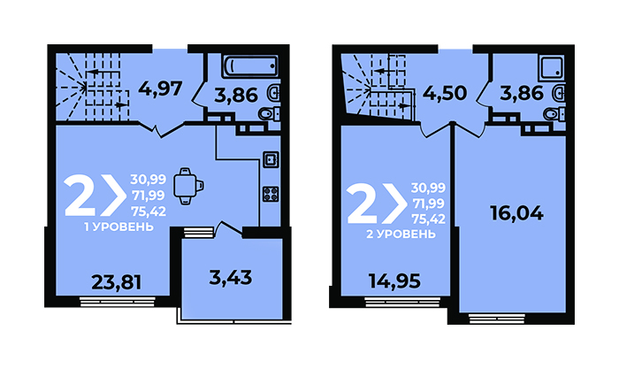 2 75.42 / 30.99 м² от 9 314 370 руб. (123 500 руб./м²) Планировка
