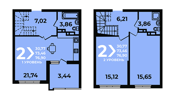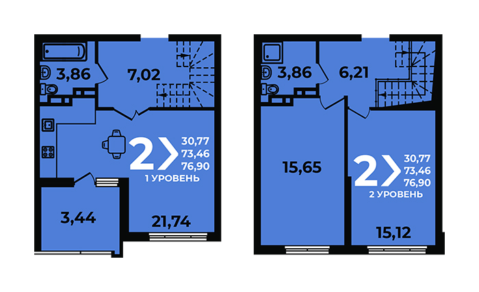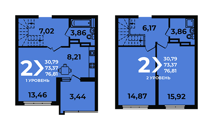 2 76.81 / 30.79 м² от 9 497 150 руб. (123 645 руб./м²) Планировка