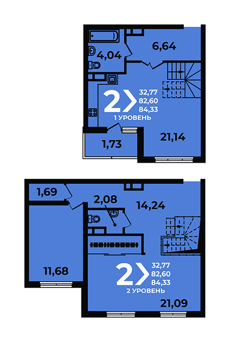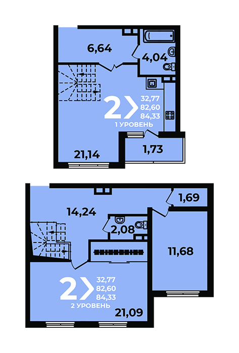 2 84.33 / 32.77 м² от 10 414 755 руб. (123 500 руб./м²) Планировка