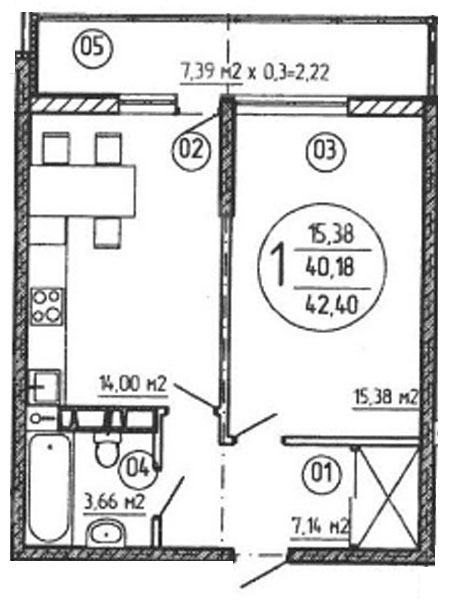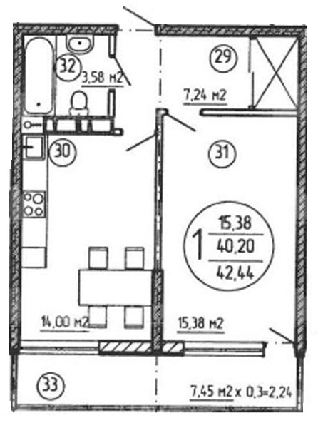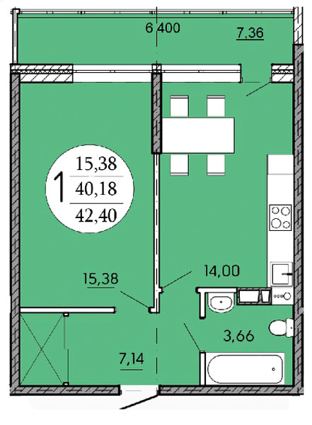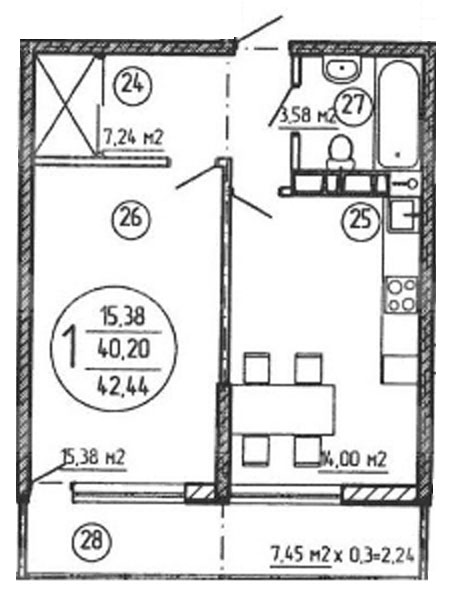 1 42.4 / 15.38 м² Планировка