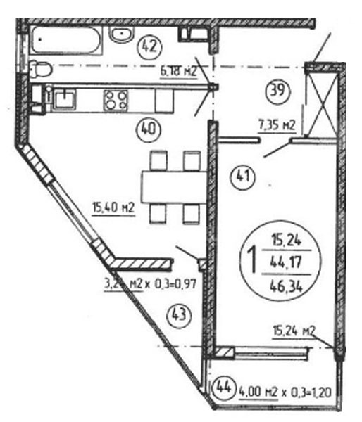 1 46.34 / 15.24 м² Планировка