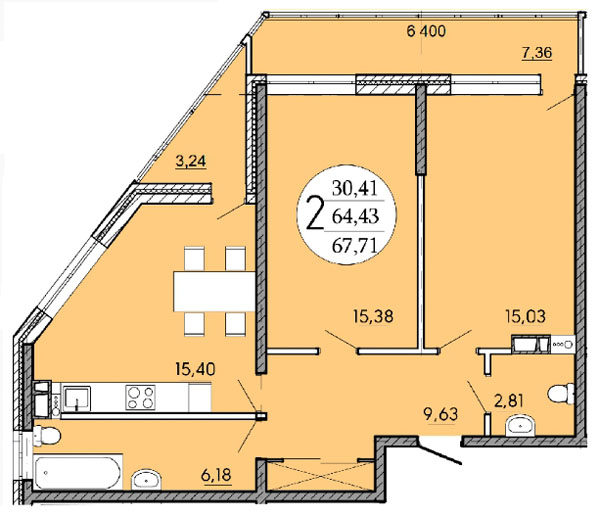 Квартира: 2-к / 67.71 м²
