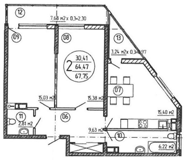 2 67.71 / 30.41 м² Планировка