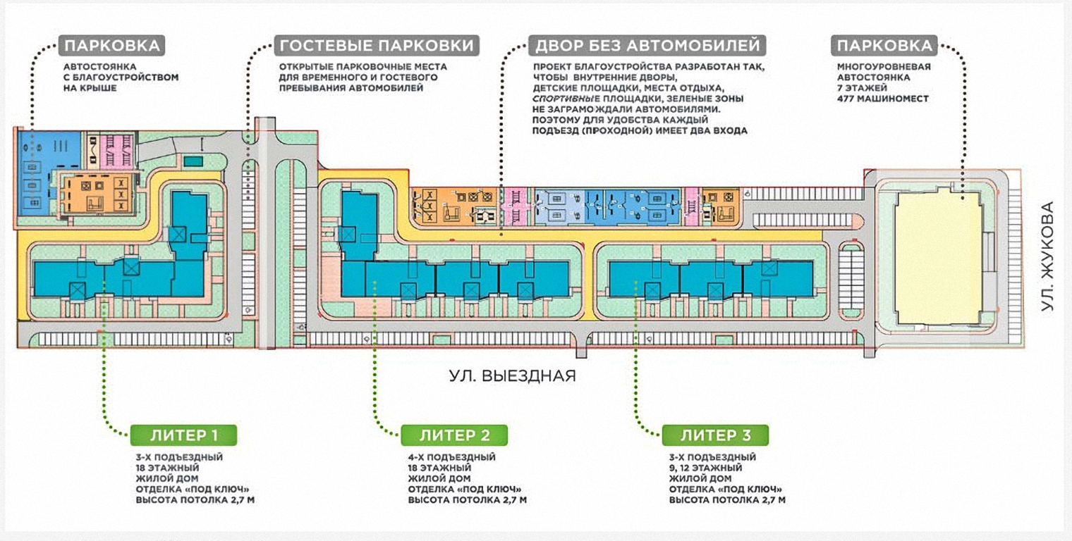 Кроме того, застройщик обещает комплексное озеленение – создание парков, прогулочных зон, высадку лесополосы рядом с микрорайоном.
