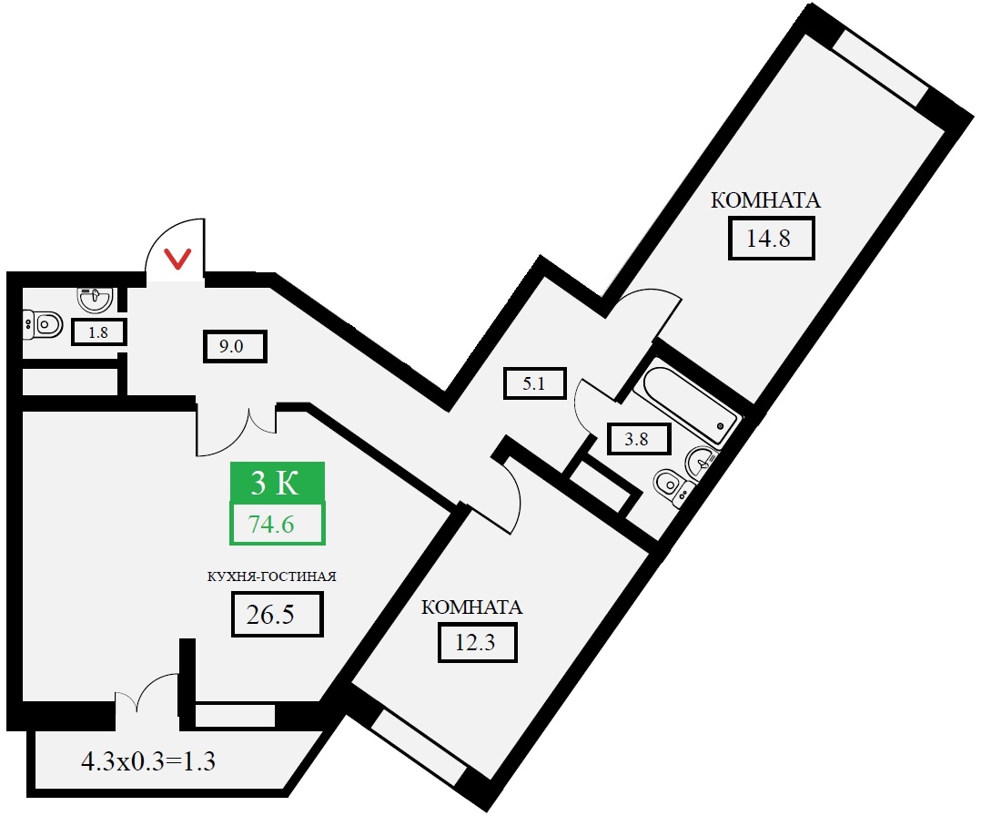 | 3 | 74.6 / 27.1 м² | 6 802 100 руб. | Планировка | Квартира от подрядчика, предчистовая, ипотека Литер 8 |