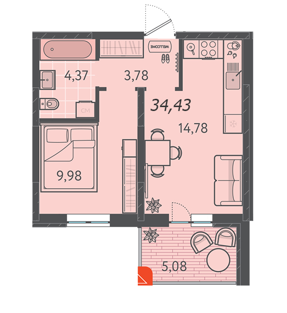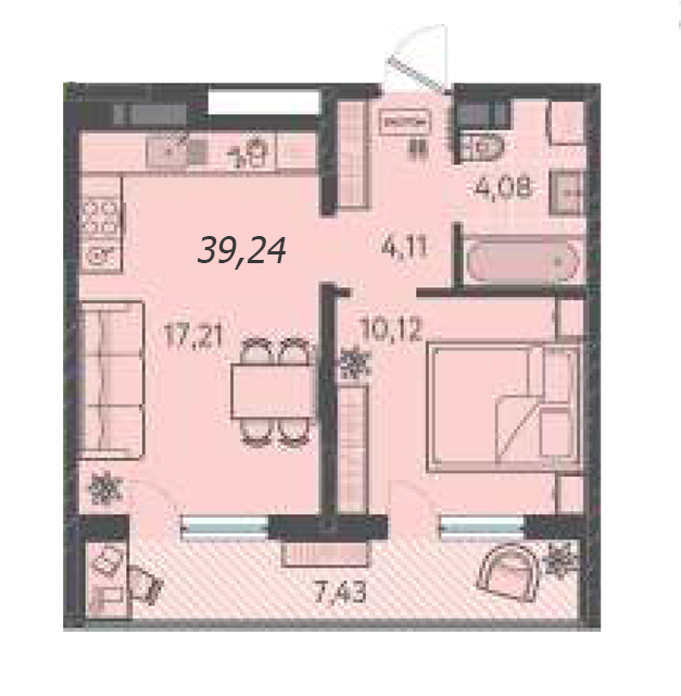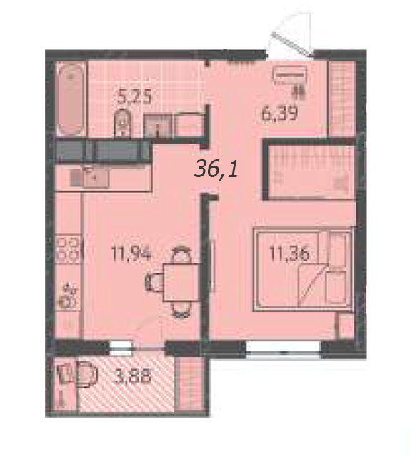 | 1 | 39.24 / 10.12 м² | от 5 375 880 руб. (137 000 руб./м²) | Планировка | |