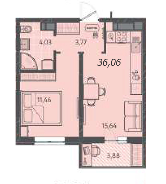 | 1 | 36.06 / 11.46 м² | от 4 435 380 руб. (123 000 руб./м²) | Планировка | |