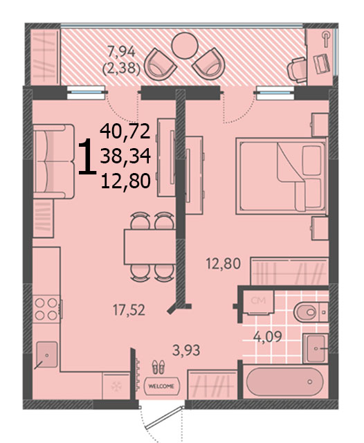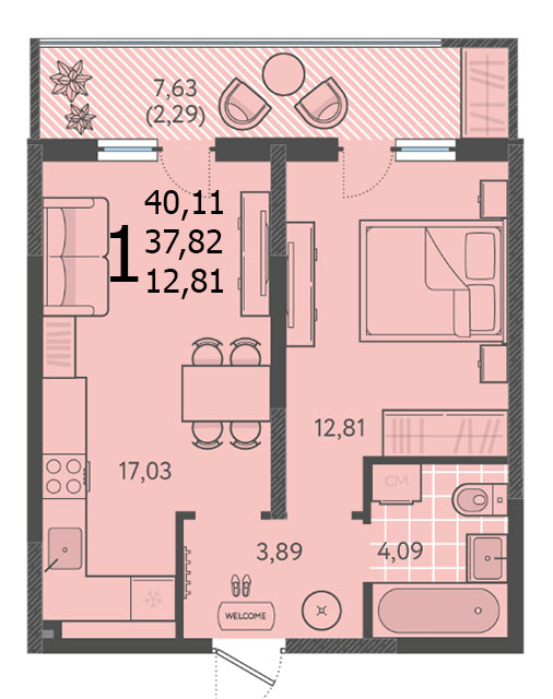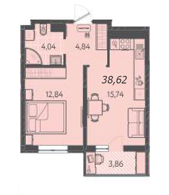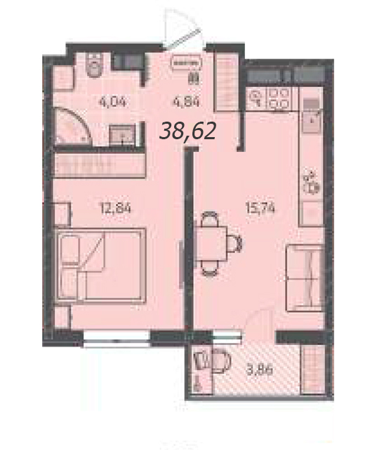 | 1 | 38.62 / 12.84 м² | от 4 750 260 руб. (123 000 руб./м²) | Планировка | |