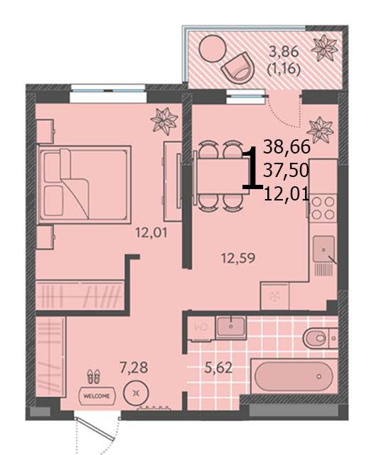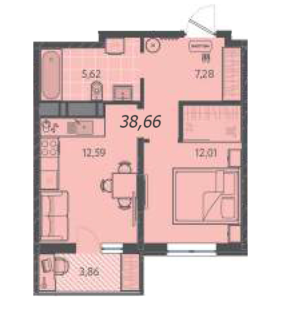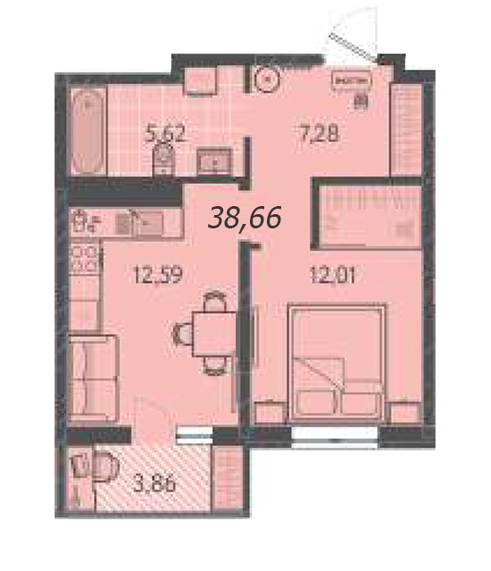 | 1 | 38.66 / 12.01 м² | от 4 755 180 руб. (123 000 руб./м²) | Планировка | |