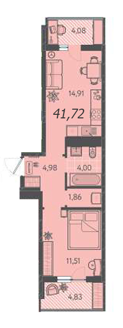 | 1 | 41.72 / 11.51 м² | от 5 548 760 руб. (133 000 руб./м²) | Планировка | |