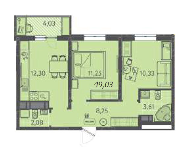 | 2 | 49.03 / 21.58 м² | от 6 030 690 руб. (123 000 руб./м²) | Планировка | |
