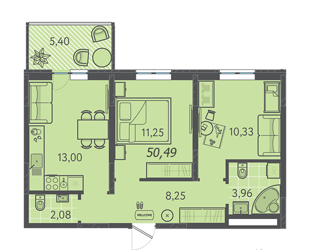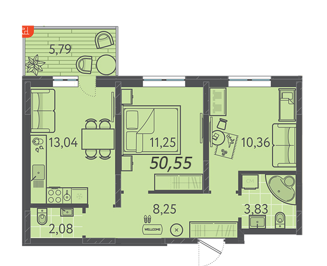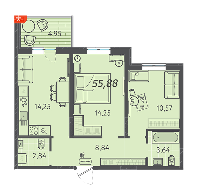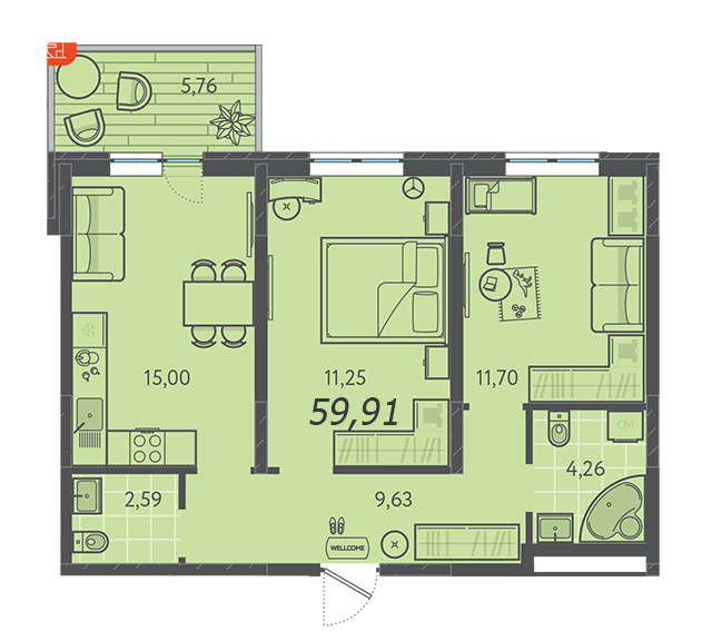 | 2 | 59.04 / 23.13 м² | от 8 265 600 руб. (140 000 руб./м²) | Планировка | |