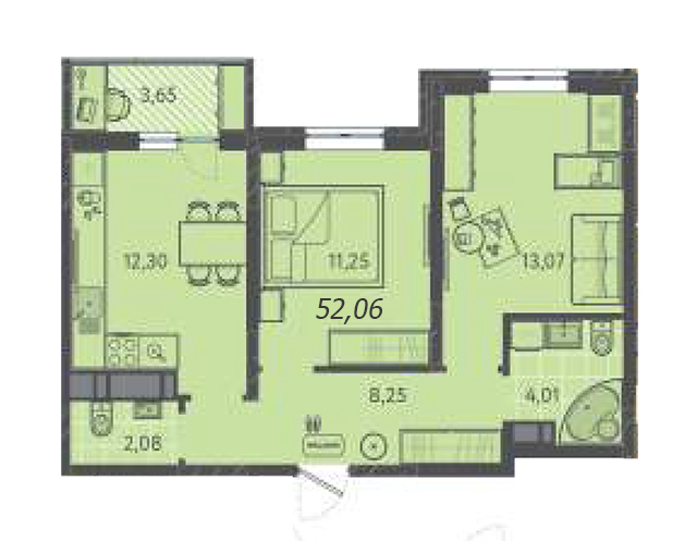 | 2 | 52.06 / 24.32 м² | от 7 288 400 руб. (140 000 руб./м²) | Планировка | |