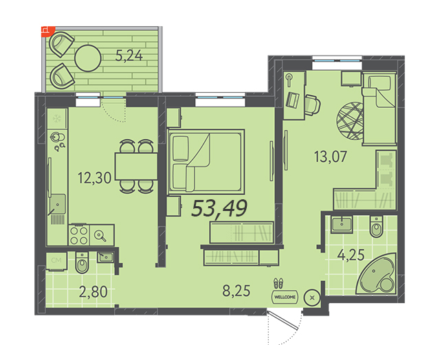 | 2 | 54.57 / 24.82 м² | от 6 712 110 руб. (123 000 руб./м²) | Планировка | |