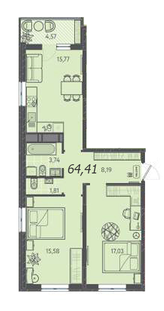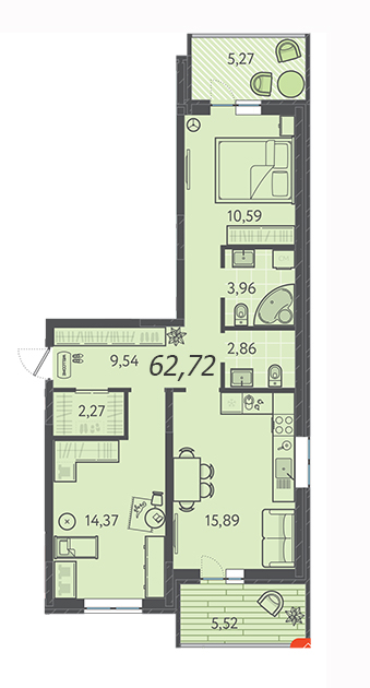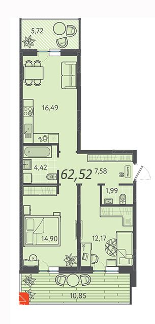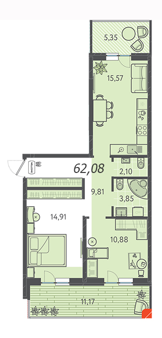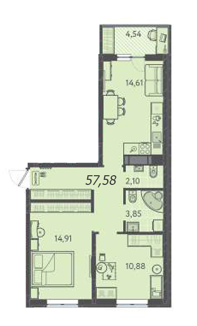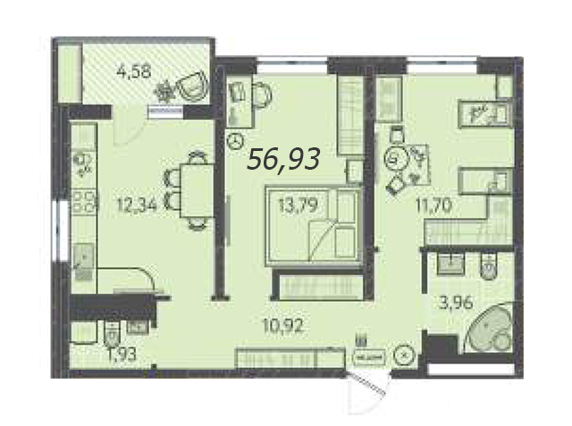 | 2 | 57.17 / 27.13 м² | от 6 860 400 руб. (120 000 руб./м²) | Планировка | |