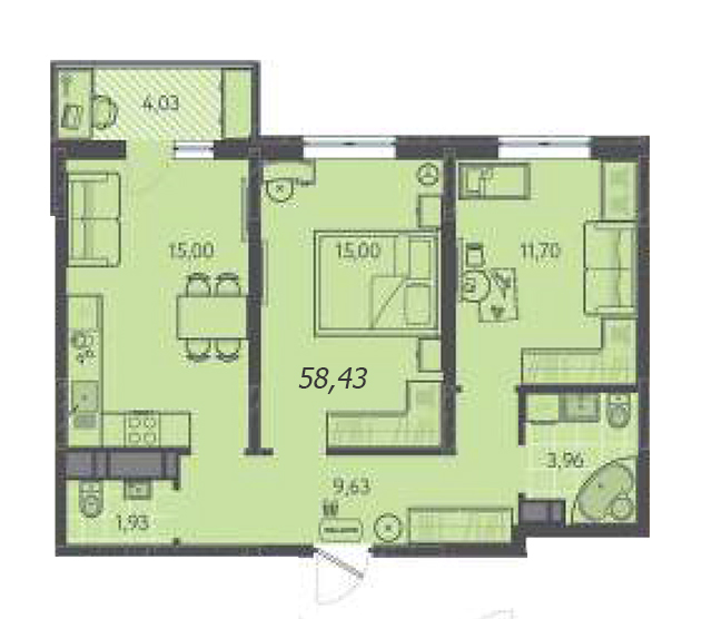 | 2 | 58.43 / 26.7 м² | от 7 011 600 руб. (120 000 руб./м²) | Планировка | |