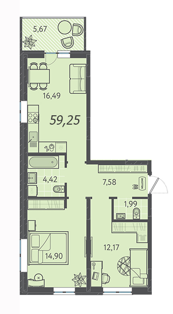 | 2 | 59.99 / 27.07 м² | от 7 258 790 руб. (121 000 руб./м²) | Планировка | |