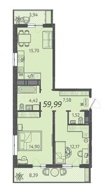 | 2 | 59.99 / 27.07 м² | от 7 798 700 руб. (130 000 руб./м²) | Планировка |