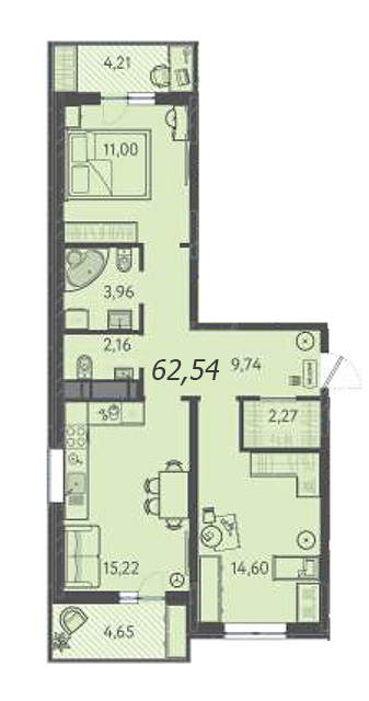 | 2 | 62.08 / 25.79 м² | от 9 312 000 руб. (150 000 руб./м²) | Планировка | |