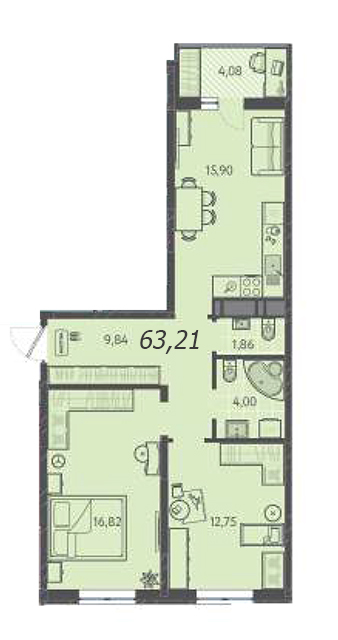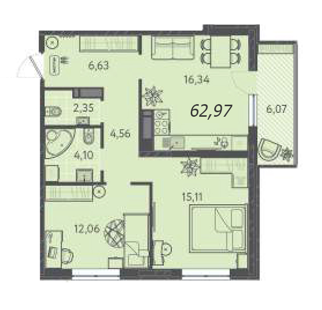 | 2 | 63.21 / 29.57 м² | от 7 585 200 руб. (120 000 руб./м²) | Планировка |