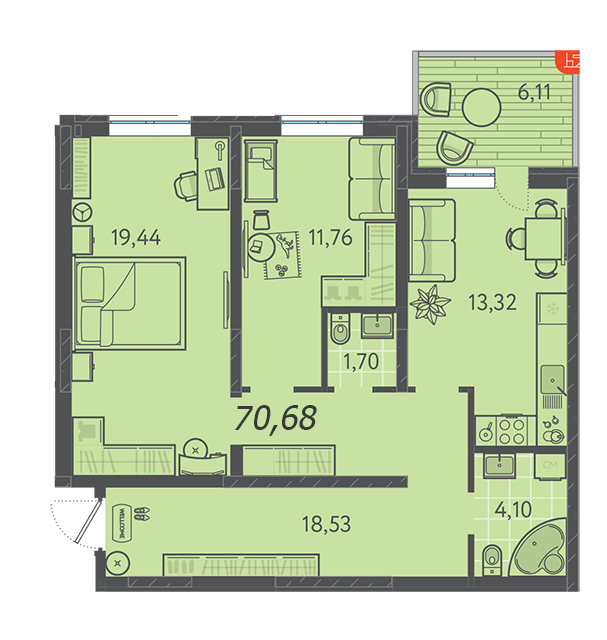 | 1 | 40.11 / 12.81 м² | от 4 933 530 руб. (123 000 руб./м²) | Планировка | |