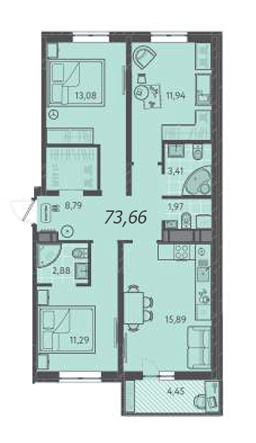 | 3 | 73.66 / 36.31 м² | от 8 912 860 руб. (121 000 руб./м²) | Планировка |