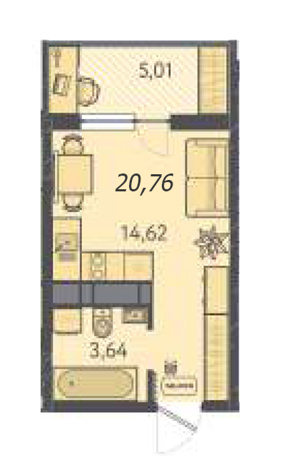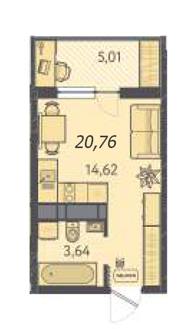 | студия | 20.76 / 14.62 м² | от 3 321 600 руб. (160 000 руб./м²) | Планировка | |