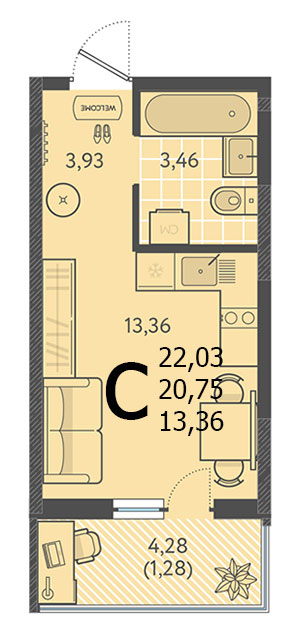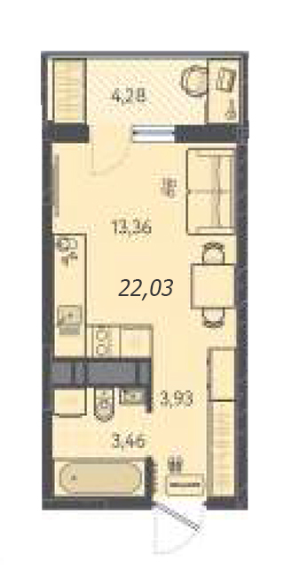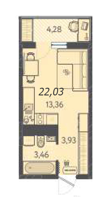 | студия | 22.03 / 13.36 м² | от 3 128 260 руб. (142 000 руб./м²) | Планировка | |